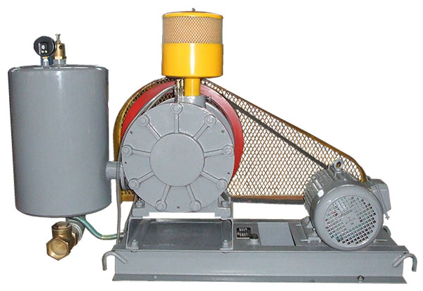 回轉式鼓風機靠汽缸內偏置的轉子偏心運轉,并使轉子槽中的葉片之間的容積變化將空氣吸入、壓縮、吐出。在運轉中利用鼓風機的壓力差自動將潤滑送到滴油嘴,滴入汽缸內以減少摩擦及噪聲,同時可保持汽缸內氣體不回流。